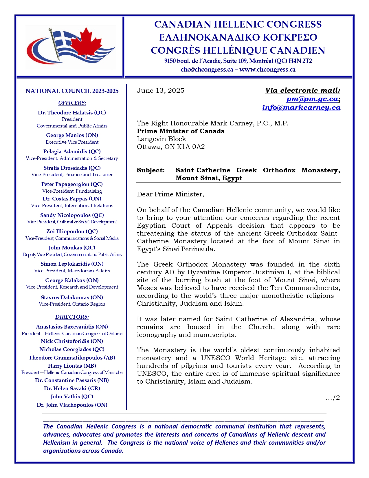 Ακολουθεί η επιστολή του Ελληνοκαναδικού Κογκρέσου προς τον καναδό Πρωθυπουργό (στην αγγλική)